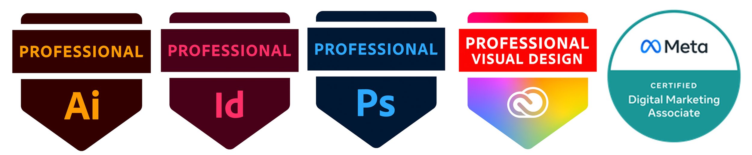 • Adobe Certified in Illustrator, Photoshop, InDesign